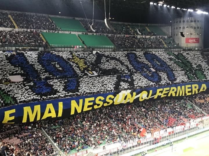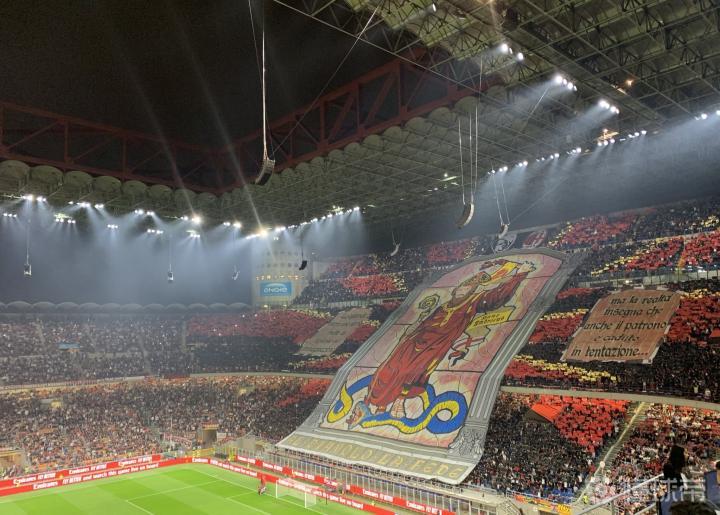 米兰德比南北看台tifo:米兰主教与蓝色蝰蛇ForzaBan @懂球帝2019-09-22 03:19北京时间9月22日凌晨,万众瞩目的米兰德比再次打响,赛前双方球迷也都在各自的看台上打出了巨型tifo,颇有德比大战的氛围。圣西罗南看台,米兰球迷打出了一幅巨大的画像,画中的主角是历史上著名的米兰主教圣安波罗修,而他正在试图杀死作为国米象征的蓝色蝰蛇。另一边的北看台上,国米球迷则打出标语:“没有谁能阻挡我们。”展开更多
