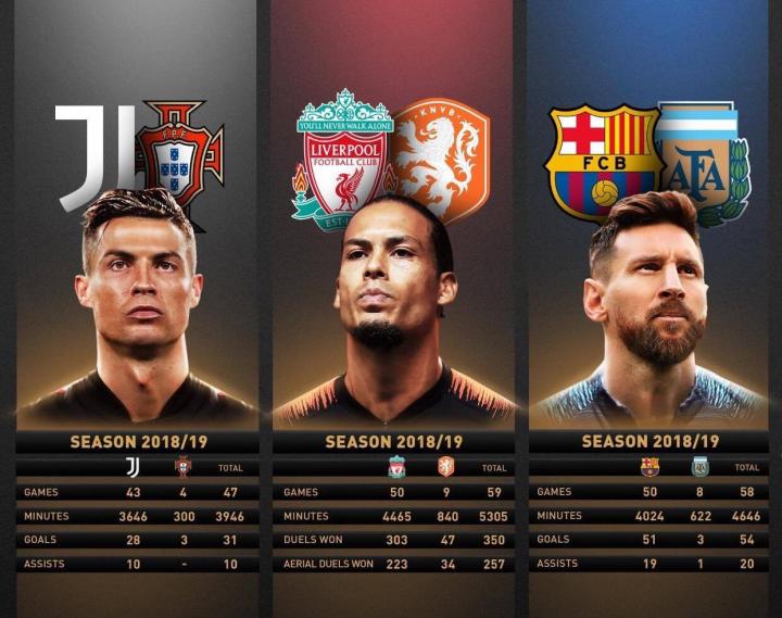 梅西、C罗、范戴克上赛季数据对比:谁将脱颖而出?