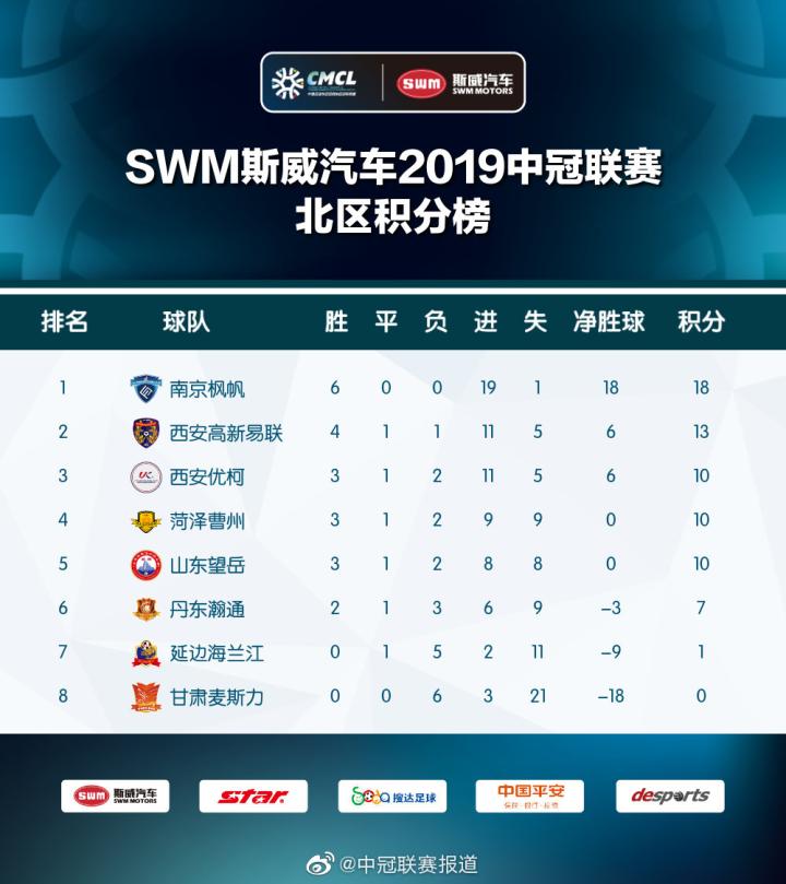 目前南京枫帆(分在北区)、深圳壆(bó)岗已经分别拿到了南北分区第一,提前确定升入中乙联赛。因为两队财力足够,财政情况正常,并不存在明年初解散的可能。而在南北区第2-第5名也基本确定,目前只是实力偏弱的丹东瀚通还有理论上的抢五可能性。