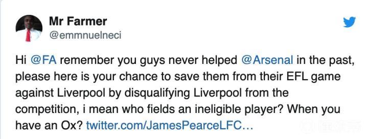阿森纳球迷热议利物浦违规事件:这是我们唯一晋级的机会