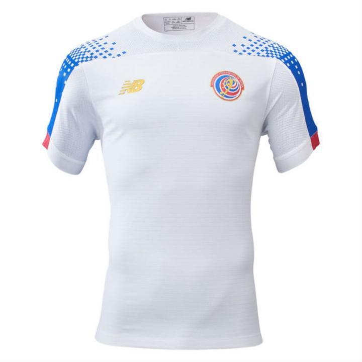 同时发布的全新客场球衣则以白色为基调,球衣肩膀上加入速度感十足的蓝色点状图案,展现哥斯达黎加足球的全新形象。此外,与New Balance为其他俱乐部与国家队打造的全新球衣相同,哥斯达黎加全新主客场球衣袖口上同样加入充满速度感的图案。