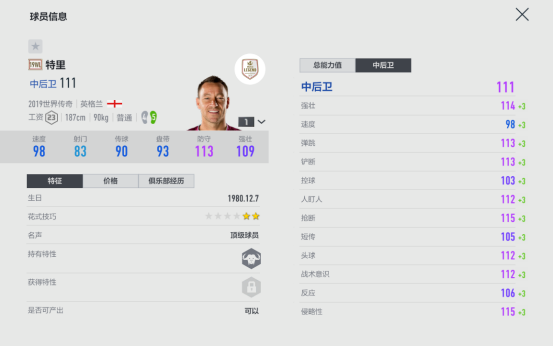 那么这位传奇中卫在游戏中怎么样?经过小编对特里一段时间的使用,将特里的一些使用心得总结奉上,供各位玩家参考~