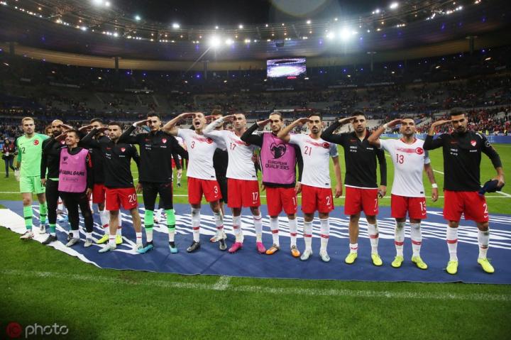在土耳其1-0战胜阿尔巴尼亚和1-1客平法国的比赛后,土耳其球员两次使用了军礼作为庆祝动作,因为10月9日土耳其对叙利亚北部发动了进攻,土耳其政府声明他们的目标是库尔德工人党的恐怖组织。