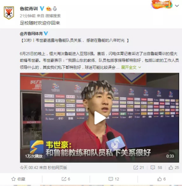 (韦世豪曾在鲁能足校学习八年,13年却并未与鲁能签订职业合同,鲁能方面对此非常不满,认为是“无良经纪人”诱惑球员,损害了俱乐部的利益)