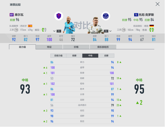 中场核心由大卫·席尔瓦和托尼·克罗斯担当。席尔瓦近十年有九年是在曼城度过。在蓝月军团,席尔瓦成为了球队的大脑,在进攻端为球队输送炮弹,创造良机。在近十年席尔瓦除了俱乐部的4座英超冠军,在国家队还有1个欧洲杯冠军和1个世界杯冠军。德国人克罗斯近十年在德甲豪门拜仁和西甲豪门皇马度过,他的传球能力出色,长传调度精准,是皇马欧冠三连冠的重要功臣之一。克罗斯在近十年有4座欧冠冠军和1座世界杯冠军。