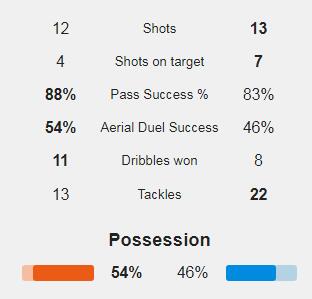本场进攻推进顺利的关键就在于两名前锋能够背身接住球,在前场有了支点。