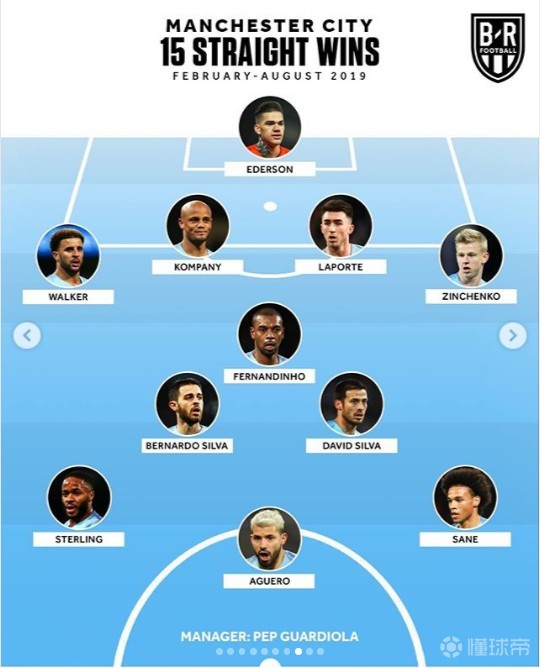 曼城15连胜 教练:瓜迪奥拉 2019年2月至8月