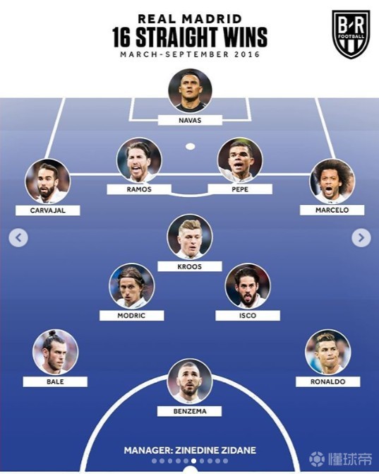 皇马在2016年的3月到9月期间创造了16连胜的纪录,连胜的第一场3-1战胜莱万特开始,直到下一个赛季西甲第5轮被比利亚雷亚尔以1-1战平,这中间有好几场比赛皇马赢得十分惊险,包括齐达内的首场国家德比,他们以2-1反击成功,客胜了巴塞罗那。