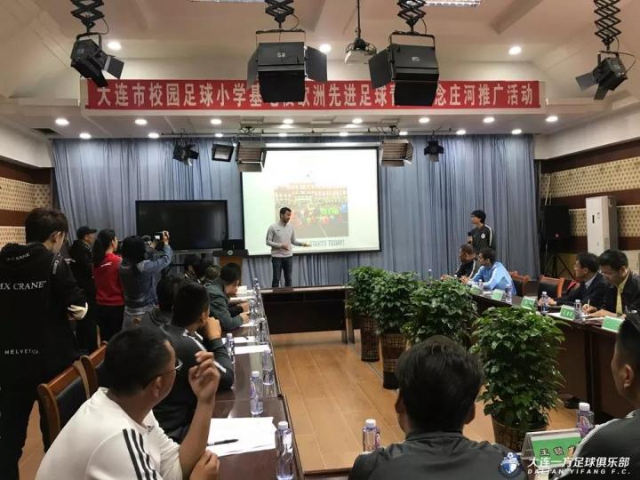 10月19日,为贯彻落实万达集团与大连市政府《关于共建大连市校园足球基地校的合作协议》文件精神,切实推动校园足球小学基地校工作开展,在校园内积极推广欧洲先进的足球青训体系及理念,大连人职业足球俱乐部与西甲维戈塞尔塔足球俱乐部基地校教练组,共同走进庄河第二实验小学,开展基地校培训指导教学暨欧洲先进足球青训体系及理念推广活动。