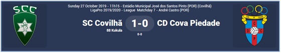 葡甲第7轮:陈佳裕打满全场表现不俗,科瓦0-1科维良体育