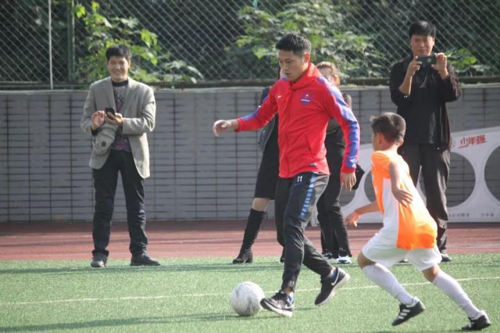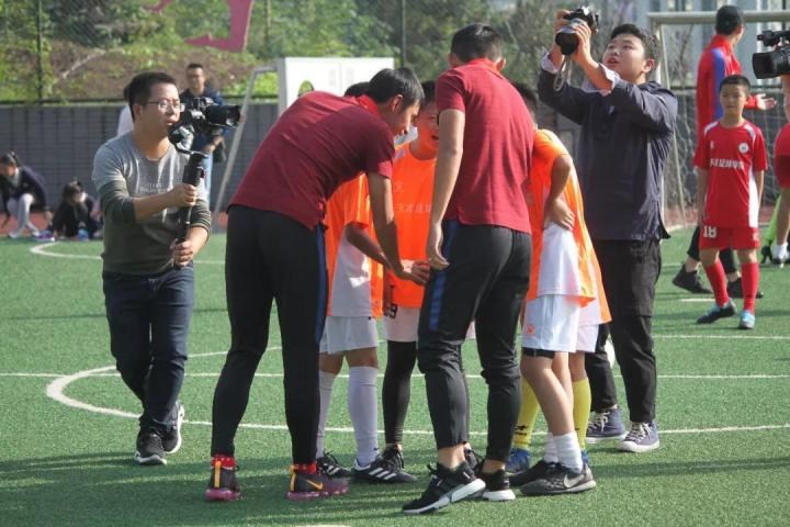 训练之后,队员和孩子们还分成两组,同场竞技!孩子们第一次与中超联赛的大哥哥们较量,都兴致勃勃,专注而认真。每逢精彩进球,场边围观的师生都报以热情的掌声鼓励。
