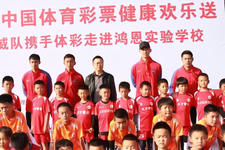 活动最后,重庆斯威足球队一行还同师生们合影留恋。俱乐部还代表重庆体育彩票管理中心,赠送给鸿恩实验学校50个足球,鼓励孩子更多参与体育运动。