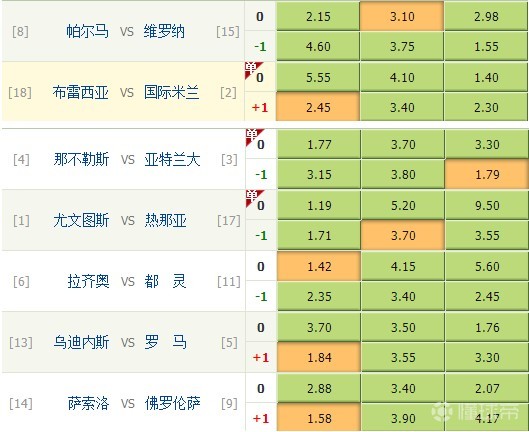 为了延续意大利足球的紧凑性,为各大球队增加游戏难度,本轮意甲将在周中开始加速赛程。像多线作战的尤文图斯,国际米兰,那不勒斯等队已经略显疲态,但依照赛程,还得再战。在这其中,阵容班底最为深厚的老妇人恐怕不太惧怕,而遭遇伤病潮,不喜轮换的孔氏国米略占下风,联赛不稳定的安式那不勒斯更显低迷,而国外保级队国内疯魔亚特兰大,从一开始便没有正眼瞧过欧冠小组赛。这些球队各自的殊死较量,提升了意甲联赛竞猜难度。下面让我们一起来看看本轮意甲有哪些关键赛事,对于赛果鸽子又是如何下定论的。