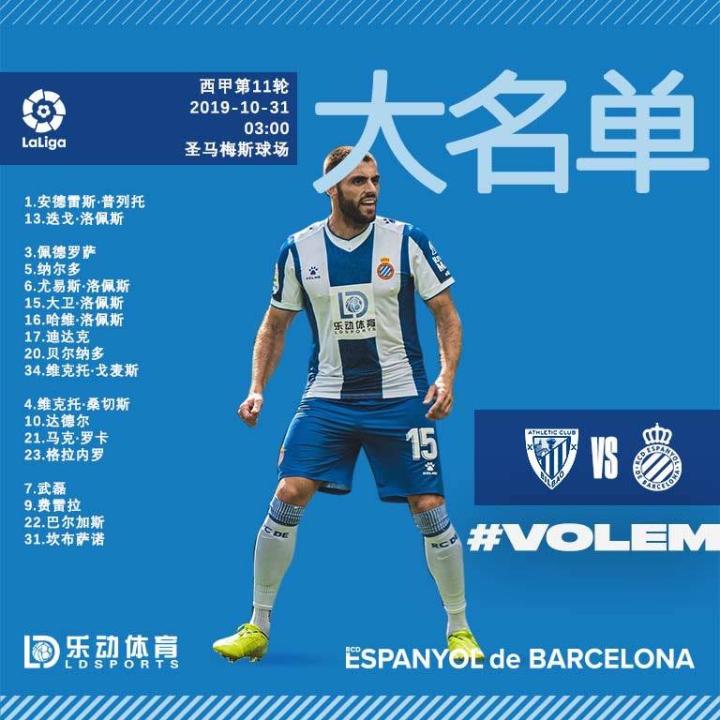 比赛日丨西甲第11轮,毕尔巴鄂竞技vs西班牙人