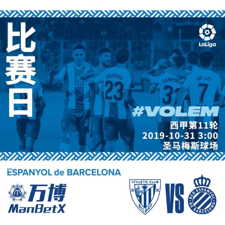 北京时间10月31日3:00,西甲第11轮,皇家西班牙人将赶赴圣马梅斯球场对阵毕尔巴鄂竞技,球队期待各项赛事3连胜为这段客场之旅画上圆满句号。