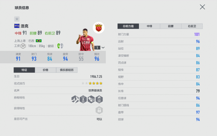 斯托伊奇科夫1卡有着高达95的任意球数值,除了C罗和内马尔,演技派的最强任意球水平就在这里了,有兴趣的同学或许可以研究一下。