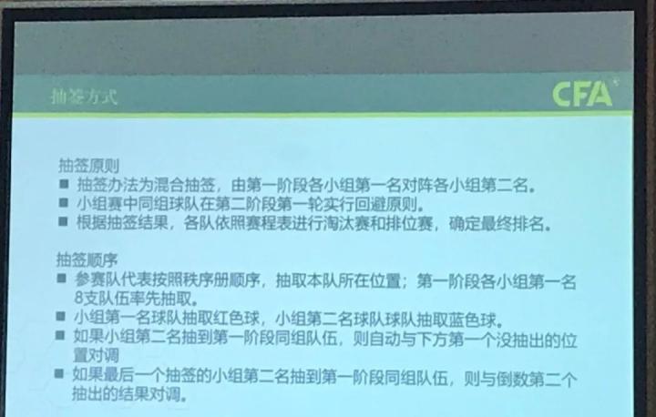 本次足协杯第二阶段抽签形式是混合抽签,由第一阶段各小组第一名对阵各小组第二名,同组球队在第二阶段实行回避原则。