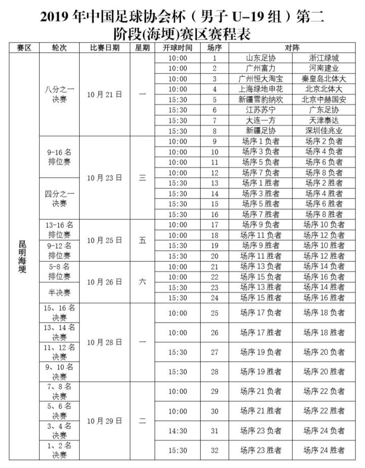 10月19-29日,2019中国足协杯男子U-19组第二阶段比赛海埂赛区(十六强决赛)再次在昆明海埂足球训练基地上演。广州富力U19分别与河南建业、山东足协、广州恒大淘宝和深圳佳兆业进行厮杀,最后以3胜1负的战绩获得本次U19足协杯的第五名。