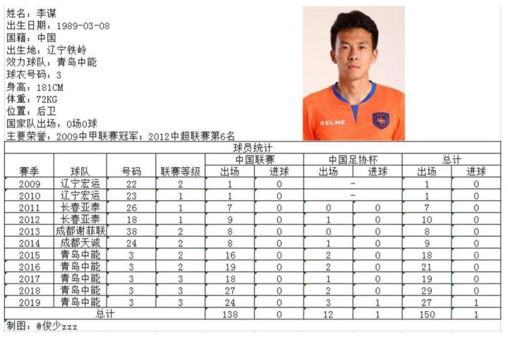 兢兢业业的边后卫,自2015年加盟青岛中能以来已先后迎来职业生涯百场里程碑和代表中能队出战百场的里程碑,不知不觉中已成为主帅麾下的股肱之臣,是不折不扣的拼命三郎,在本赛季足协杯主场对阵南宁滨江的比赛中,李谋接吴凯直塞打入职业生涯处子球,可谓铁树开花。本赛季李谋先后尝试过多个后场位置,是球队的“万金油”球员,本赛季结束后李谋也正是迎来了自己150场里程碑,而这其中大部分场次奉献给了中能队。