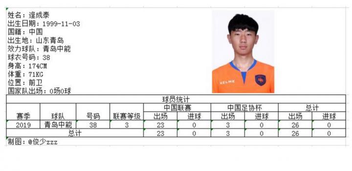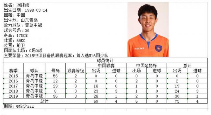 本赛季U21主力球员,曾入选过U16国少队出场4次,并随队征战了2014年亚少赛,也曾入选山东U20男子足球队征战第十三届全国运动会。上赛季打入3粒进球,平心而论,即使在没有U21新政的情况下,刘鍏成也可以凭借自身实力锁定一个首发名额。