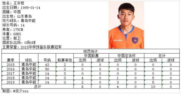 1995年出生的王宗哲同样是中能青训培养的优秀球员,速度快,前插意识强,是一名潜力无限的年轻球员。