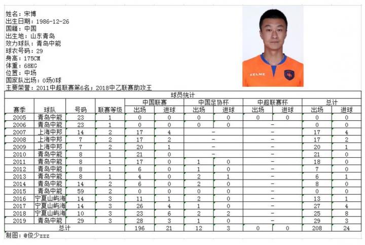 2005年出道于青岛中能的宋博在中国足坛被称为“小申思”,不仅拥有犀利的边路突破技术,在中场的调度和传球也颇具功力,堪称球队进攻的“发动机”。自青岛中能出道,后加盟上海七斗星,近3个赛季宋博在中乙联赛中表现优异,可谓焕发职业生涯的第二春。本赛季送出14记助攻的宋博将蝉联了中乙助攻王,他的定位球多次精确找到沙一博、陈博两名球员,可谓“双博连线,勃勃生机”。
