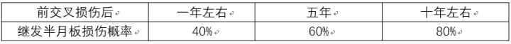 需要注意的一点是如果半月板与前交叉韧带都有问题的情况,患上骨性关节炎的几率会大幅提高(21%-48%),如果是单纯的前叉损伤的话这个比例为13%。