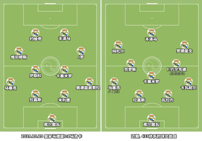 在长期围绕C罗建队的过程中,皇马打造了一套以冲击型锋卫和技术型中场为核心的进攻体系,具备爆点能力但传中和覆盖能力不强的球员被放弃。由于C罗和本泽马组合需要较大的活动空间,“齐一期”在搭建中场时没有选择具备后上冲击能力的B2B球员,转而依靠同质化的技术型球员来加强控制。自赛季开打以来,皇马的主力阵容中一直以老球员为主,齐达内在很多比赛中摆出的首发甚至全部都是“齐一期”的球员。当年围绕C罗搭建的“特型”阵容还在日复一日地运转中,但这个体系的核心组件却已经不在,进攻效率自然无法令人满意。