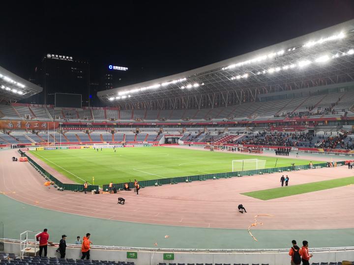 (济宁圣橙球迷会所在的济南奥体中心体育场227区看台视角,摄于2019年5月8日)