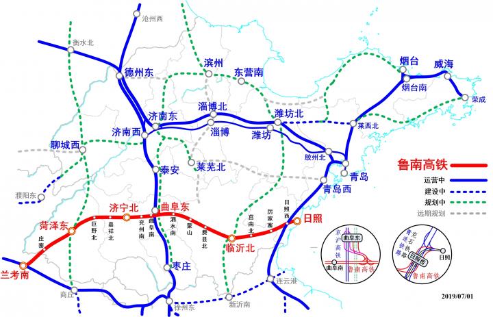 (鲁南高铁在山东省内的位置,作者:incentive001)