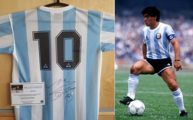意大利天空体育统计了世界上一些落场版球衣拍卖的价格,一件马拉多纳身穿并且签名的阿根廷国家队球衣曾经以6800美元的高价成交。