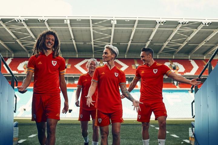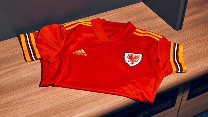 新款威尔士主场球衣极具威尔士文化特色,其红色和黄色细节均取自葛兰道尔旗帜。袖口的设计是为了向威尔士支持者致敬,它被称为“红墙”,并加入了威尔士国旗标志性的绿、白、红三色。