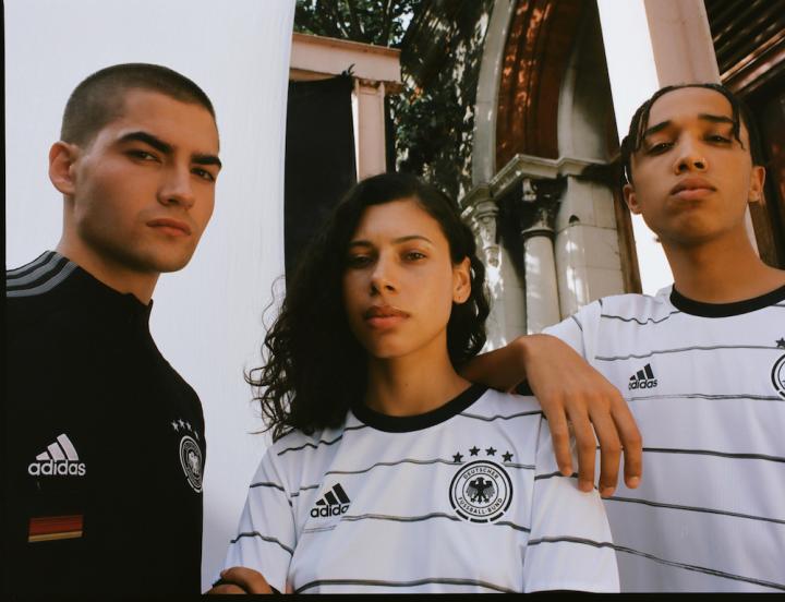 从20世纪80年代起,条纹就被嵌入了德国足协球衣的设计中,2020版球衣将会以现代手绘细条纹的风格重新诠释这一标志性细节。为了向现代街头风格致敬,它采用一种简约的美学,其灵感来自于原始艺术品的简洁笔触。