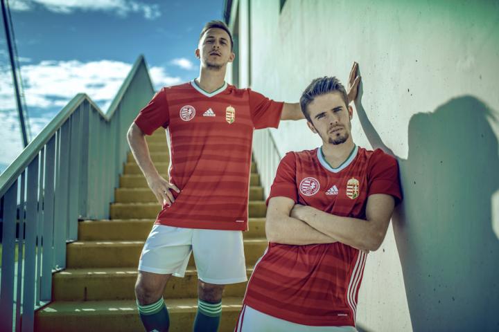 匈牙利新主场球衣主要采用鲜艳的红色和白色,领口处还有绿色的装饰,以此来代表该国的国旗。球衣的图案灵感来自多瑙河,多瑙河位于匈牙利的核心地区,采用不同深浅的红色涂鸦风格,创造出河水流动的效果。同时,“Magyarorszag”字样被印在衣领后方,为其设计勾勒上优雅的一笔。