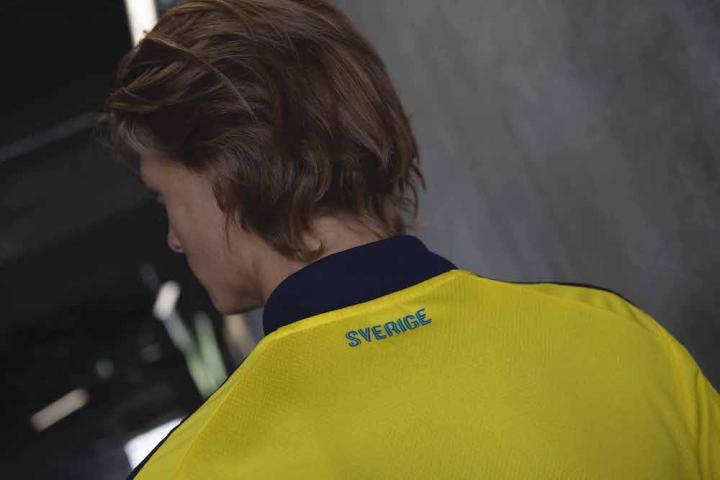 新款瑞典球衣结合了经典和现代风格,具有既简洁又简约的外观,且把重点放在充满艺术感的袖子上。袖子上的条纹间接地诠释了瑞典国旗,给人一种清新干净的感觉,而“Sverige”的字样在衣领后部也成为一个巧妙地设计。