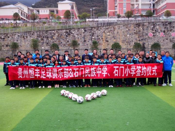 11月13日下午,贵州恒丰足球俱乐部与威宁彝族回族苗族自治县石门民族中学、石门小学签约、授牌仪式在石门民族中学举行。