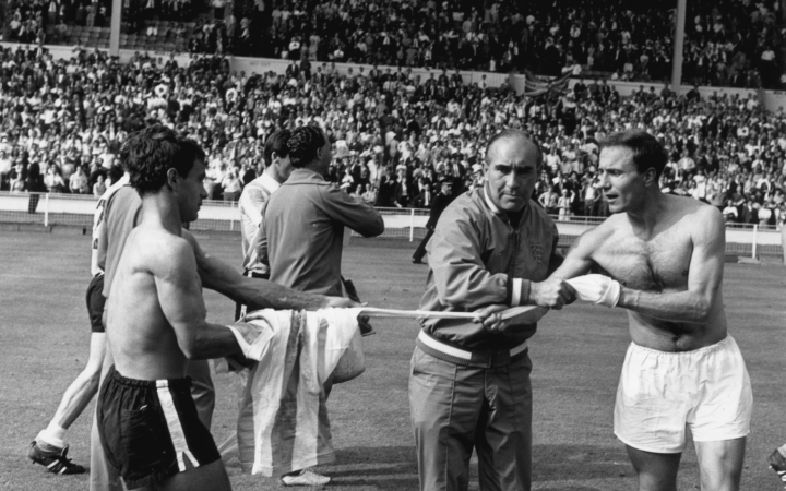 而这两场比赛,都与一个人息息相关,他叫肯-阿斯顿,绝大多数球迷可能不知道他的名字。1962年那场“圣地亚哥”之战他担任主裁判,而1966年的英阿大战他就是那位下场调停的裁判监督,同时也是整届杯赛的总裁判长。