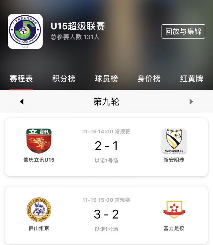 2019年11月16日,首届“锐克体育”广东省五人足球U15超级(小粤超)联赛总决赛在广州海珠区以诺足球公园举行,这是中国第一个社会办省级五人足球青少年联赛。8支来自全省的高水平青少年U15五人足球队参加了比赛!最终佛山维京3;2战胜富力足校队夺得首届小粤超联赛桂冠, 富力足校收获亚军。 肇庆立讯U15队经过艰难的比赛最后2;1战胜新安明珠夺得季军,新安明珠获得第四名。