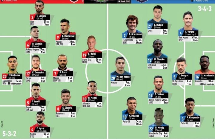 北京时间明天凌晨3:45,法国男足欧预赛小组赛第10轮中客场挑战阿尔巴尼亚。赛前,《队报》预测了高卢雄鸡的首发阵容。