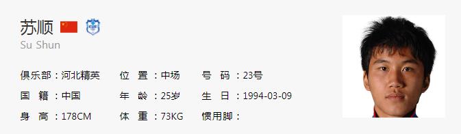 6.苏顺 94(河北精英),2017-2018年在云南飞虎踢球,2019年球队解散转投河北精英。早年间在申花曾连续三年报名一队(13-15),但没有踢过联赛。