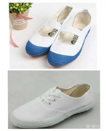 基本上每个85后的老男孩都穿过疙瘩鞋,而女孩们更多穿的是这一种蓝胶头鞋和白瓦鞋: