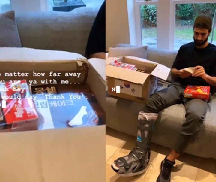暖心,正在家中养伤的戈麦斯收到了来自韩国的一箱零食