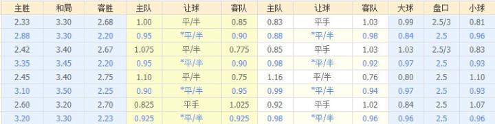 机构以主让2.25起步,个别机构开出主让2球低指,但最终统一到主让2.25,两队实力悬殊,主让2.25亦能看出两队差距,在战意成疑,大将受损的情况下,曼城让步依旧稳定,给予支持力度较大,本轮看好曼城主场大胜。