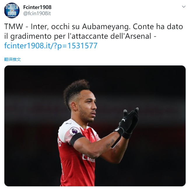 值得一提的是,蓝黑军团主教练孔蒂非常欣赏奥巴梅扬。