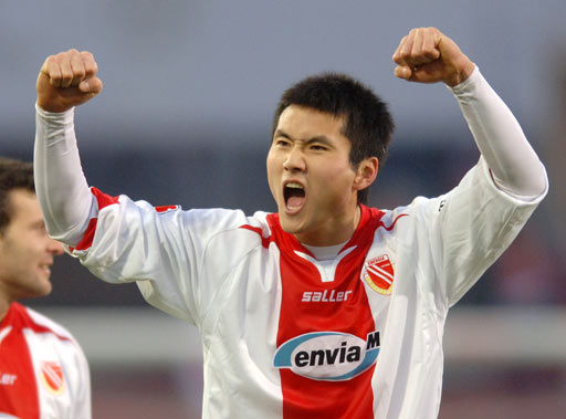 邵佳一在面对科特布斯时,攻入了一粒任意球,这也是他留洋的处子球。有意思的是,科特布斯后来成为了他的新东家。后来慕尼黑1860降级,邵佳一又随队征战德乙。