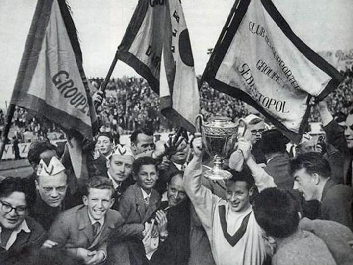 1944-1954,战后最好的俱乐部1944年里尔正式成立的第一个赛季,在英国教练乔治-贝里的带领下,先后击败了雷恩,里昂,图卢兹之后打入法国杯决赛,他们面对当时的巴黎竞技(Racing Club de Paris),由于缺乏经验,范杜伦,勒坎特和巴拉特是那个时代最好的球员,最终里尔没能夺冠。但是第二个赛季,也就是1946年,在乔治-贝里的带领下他们力压圣埃蒂安和同城死敌图尔宽,一举拿下法甲,法国杯双冠王,Rene Bihel在26场比赛打入28球成为最佳射手。随后里尔势如破竹,可以说是战后十年最好的俱乐部,他们还获得了1954年的法甲冠军,还有1947,1948,1953,1955年的法国杯。