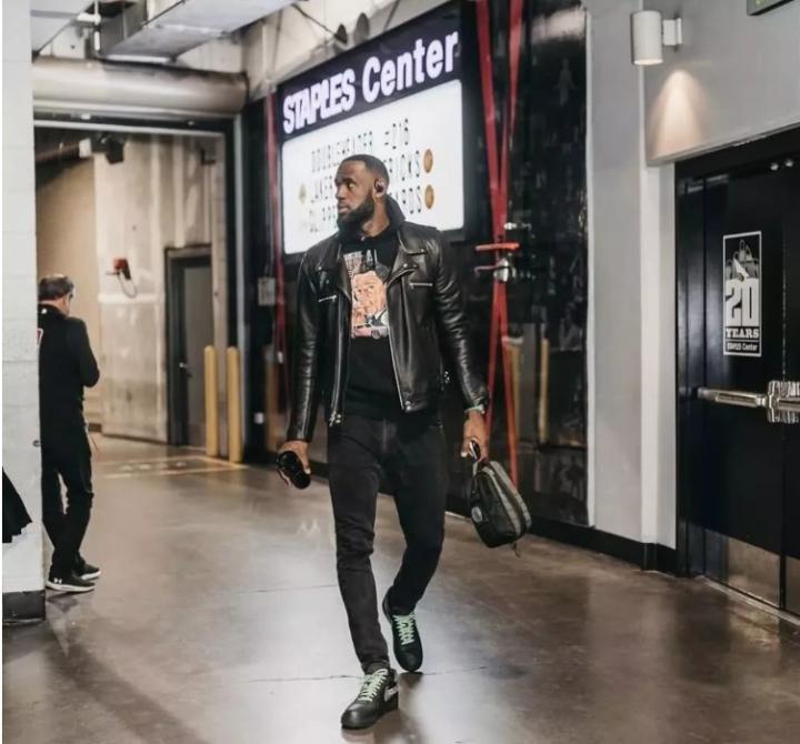 言归正传,还是聊聊今天湖人与独行侠这场北京时间凌晨5点的比赛。赛前,詹姆斯穿着一身皮衣来到了斯台普斯中心球馆。