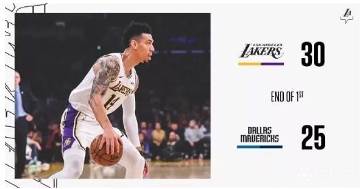 首节湖人30-25领先独行侠,格林和浓眉各得8分,詹姆斯6分5助攻3抢断。
