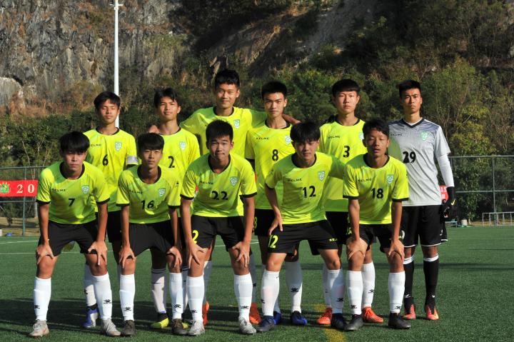 △ 翠园中学夺2019年深圳市中小学生校园足球联赛双冠。红色球衣为翠园中学初中队,黄色球衣为翠园中学高中队。