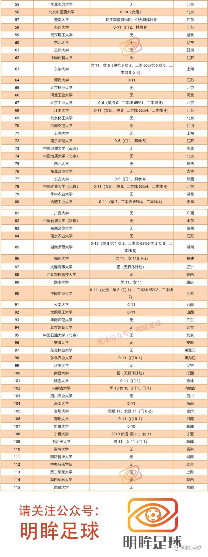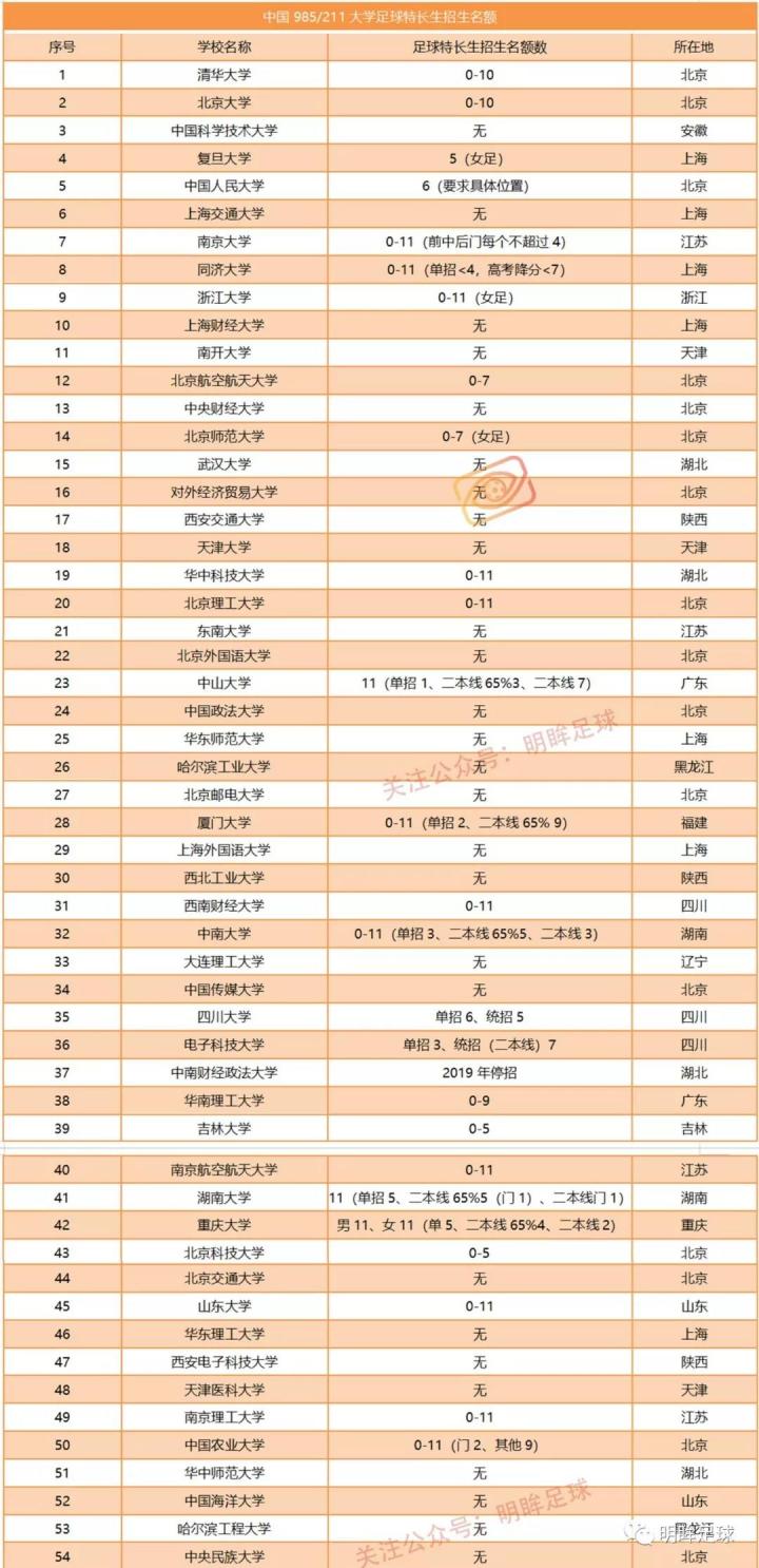3、因为这里的院校确实比较多,很有可能会有变动和疏漏,如果最近有什么变动,欢迎大家在评论区留言指正。有些学校招生简章里写着招足球特长生,但是并没有明确的计划数,所以并没有将其列入计算。